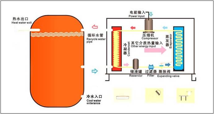 空氣能熱泵熱水器也稱“空氣源熱泵熱水器”“熱泵熱水器”“空氣能熱水器” 等。空氣能熱泵熱水器(空氣源熱泵熱水器)中的熱泵能把空氣中的低溫熱能吸收進來,經(jīng)過壓縮機壓縮后轉化為高溫熱能,加熱水溫。這種熱水器(空氣源熱泵熱水器)具有高效節(jié)能的特點,其耗電量是同等容量電熱水器的1/4,是燃氣熱水器的1/3。空氣能熱泵熱水器(空氣源熱泵熱水器)的初期投資是煤氣、天然氣、電熱水器的三至五倍,但其日常運行成本較低。