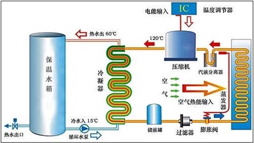 出水溫度可隨意調節(jié),機組啟動后根據(jù)用戶的需求,制熱、供熱水、補冷水、回水、水溫調節(jié)、供水時間、安全保證等全部采用微電腦全自動智能化控制,操作可全自動進行而無需人為操作,給用戶帶來極大的方便;針對空氣能中央熱水器冬季工況進行特點,確定機組優(yōu)化控制程序模式,確保系統(tǒng)在冬季-10攝氏度低溫氣候條件下仍能正常進行。