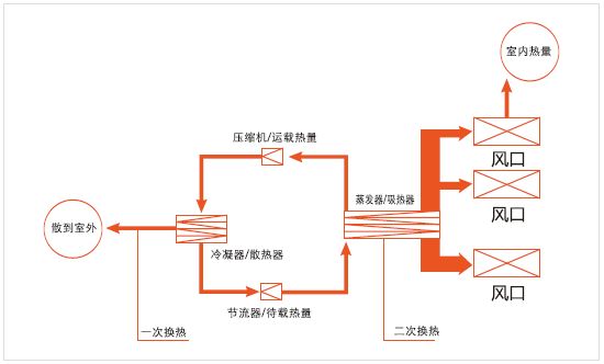 制冷:即從室內(nèi)搬運(yùn)熱量到室外