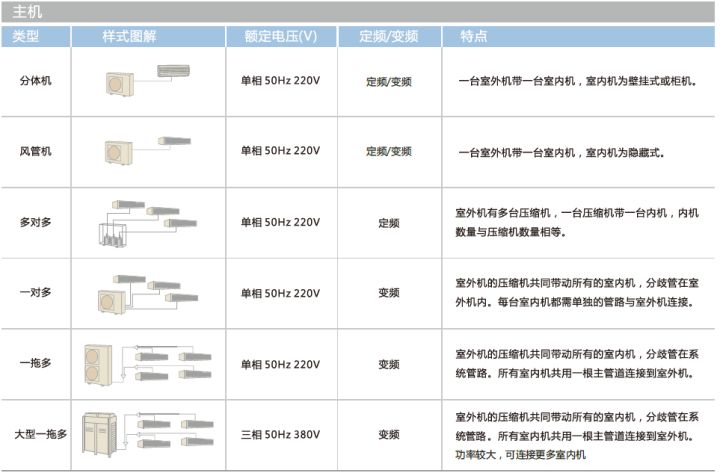 室外機(jī)通過冷媒管與多臺室內(nèi)機(jī)連接,每個房間的內(nèi)機(jī)均直接與空氣換熱。
