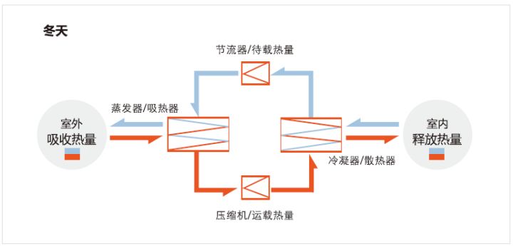 制熱:即從室外搬運(yùn)熱量到室內(nèi)