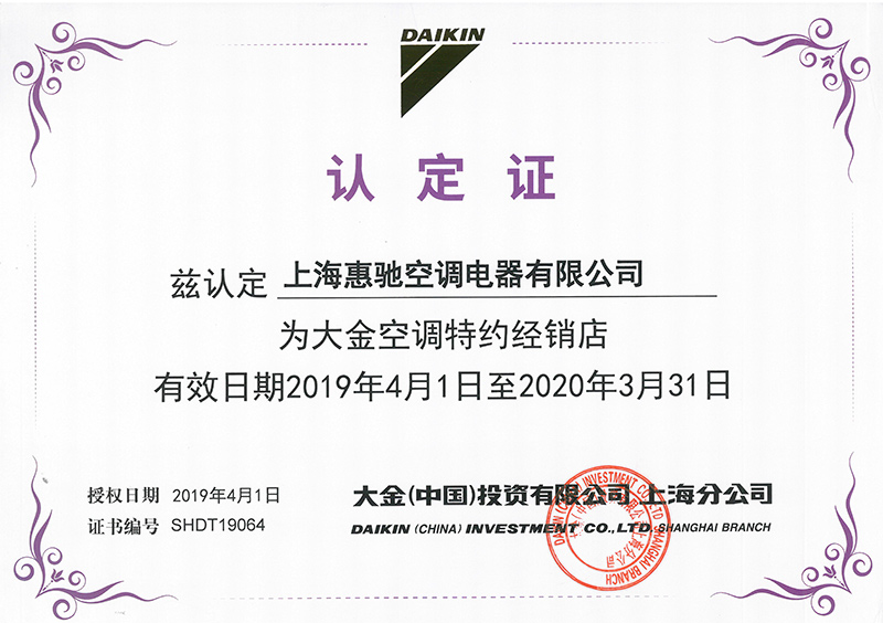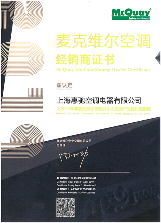 麥克維爾空調(diào)經(jīng)銷商證書